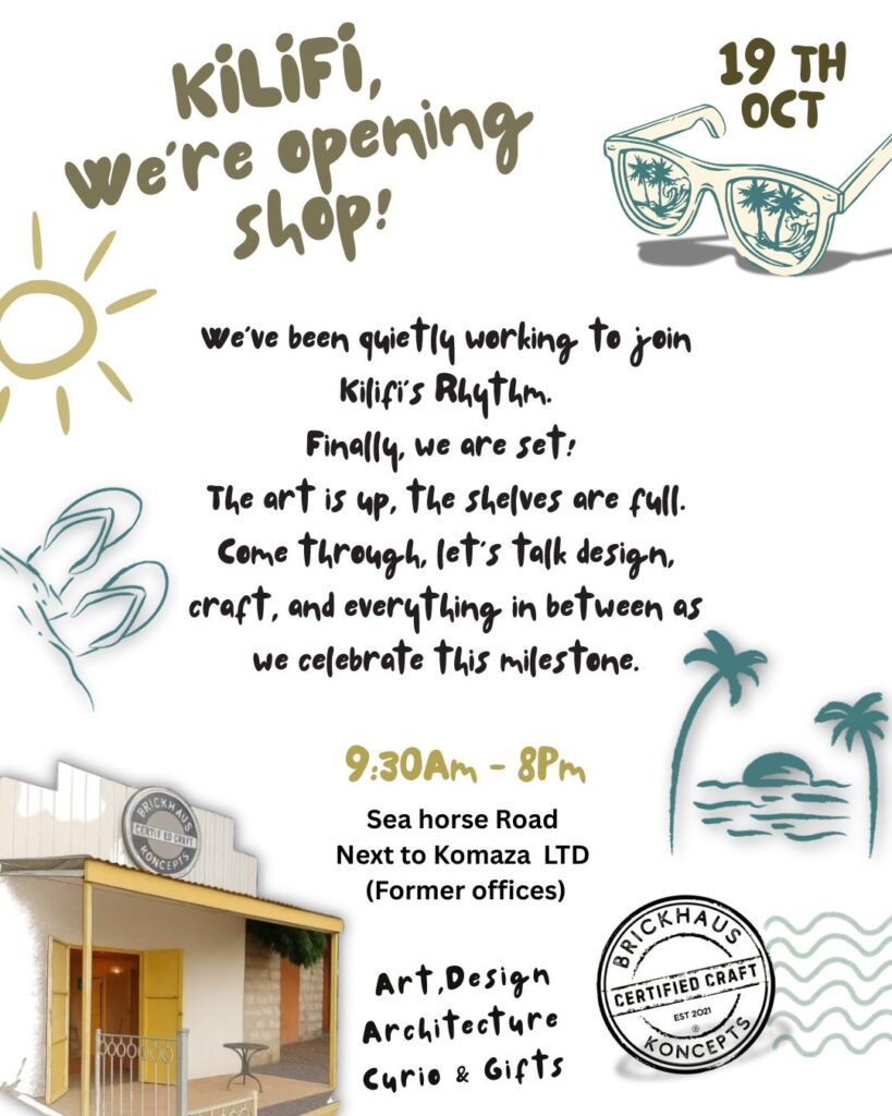 Brickhaus Koncepts is opening-Kilifi's freshest creative space- Design, Art and Architecture studio. Curio and giftshop. The art is up, the shelves are full, and the space is ready to welcome everyone. Come through and join in celebrating this exciting milestone.